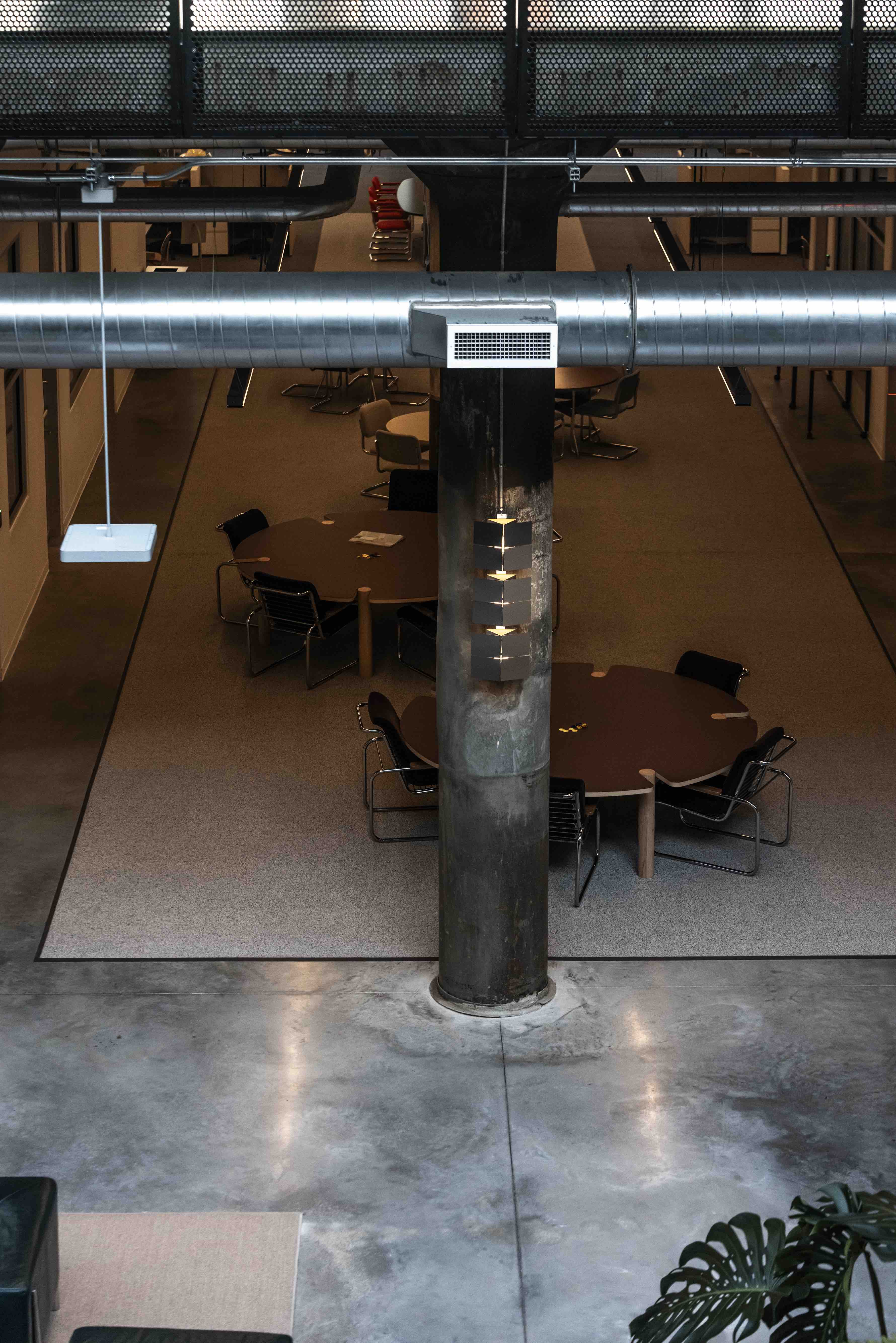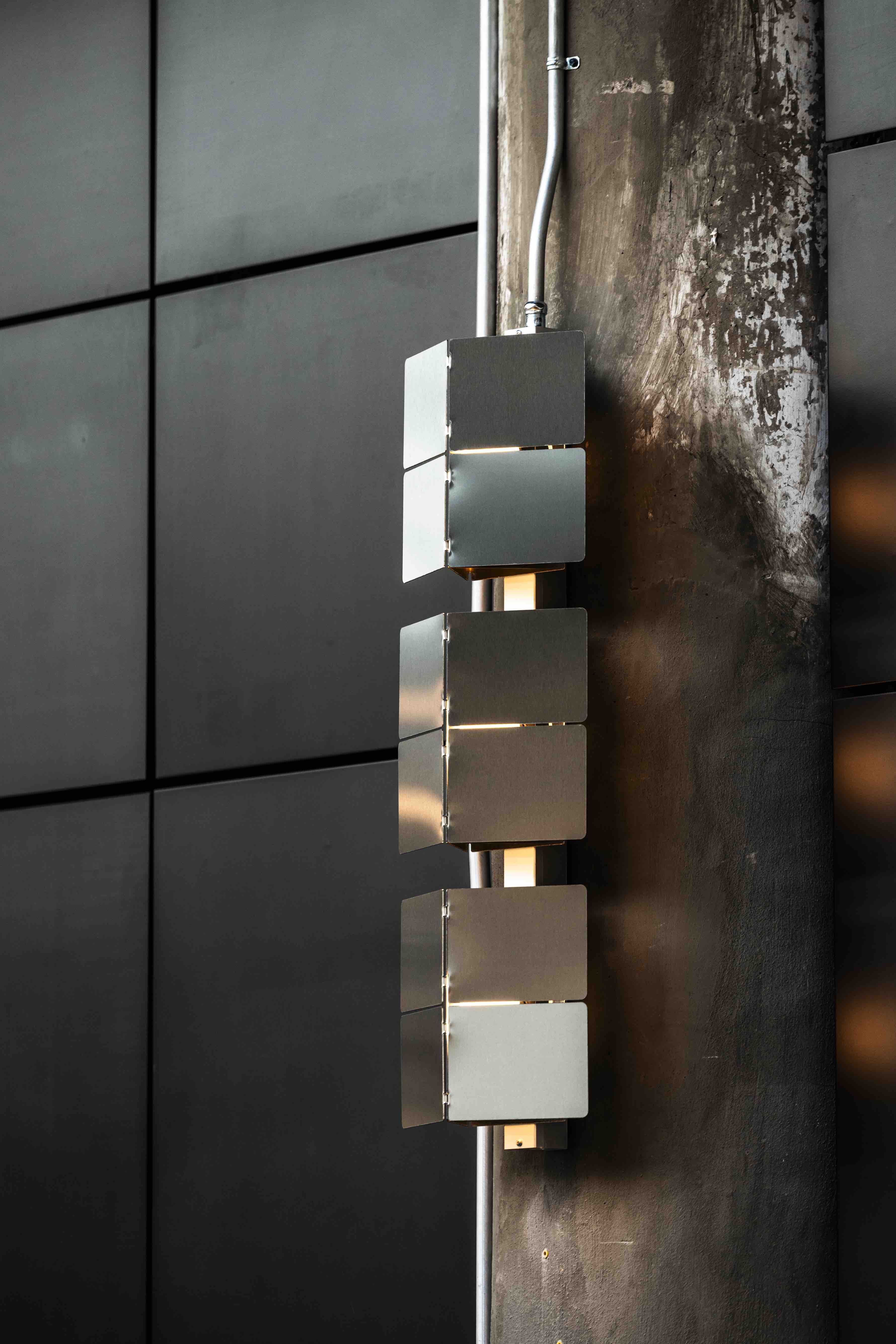 Wall sconces installed in the Newlab facilities at Michigan Central building in Detroit.