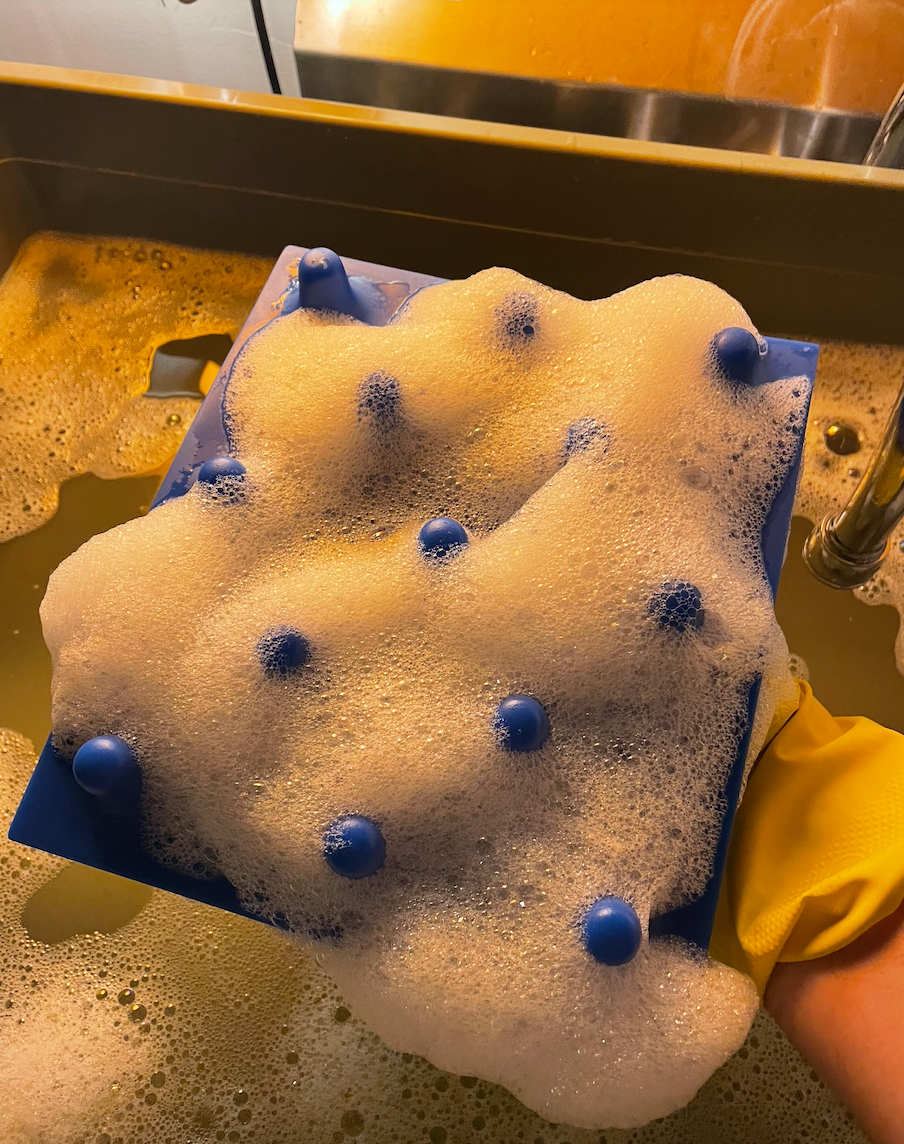 Designed to both protect glasses as well as give them a place to rest in a decorative way. It’s initial design was inspired by egg crates and the silicone material provided a perfect medium to shed some fun into the final product.